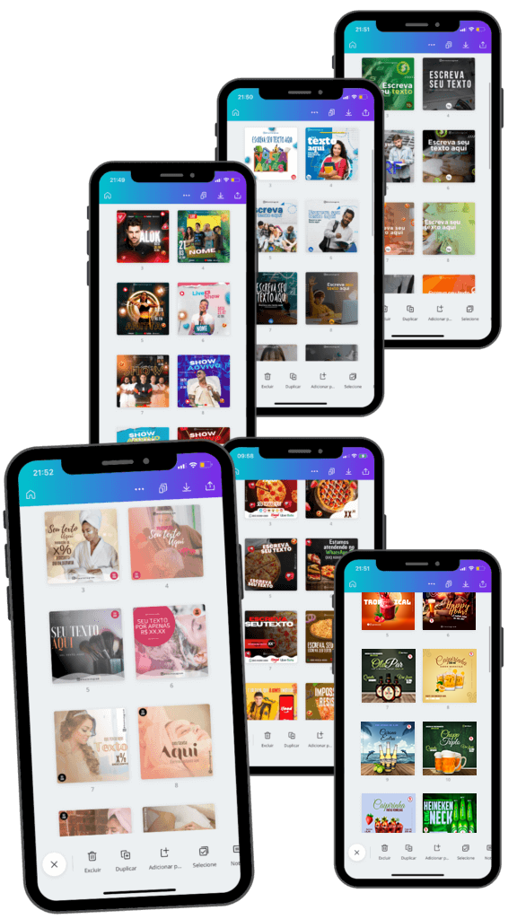 No total são 102 segmentos, sendo + 3.400 artes para feed e + 150 artes para stories.